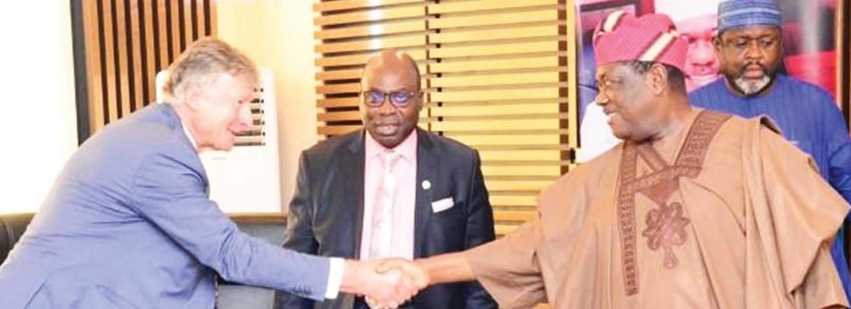 Founder, Standard IBTC Bank, Mr Atedo Peterside; Secretary to the Lagos State Government, Barr Abimbola Salu-Hundeyin; Founder and Chairman, Aig-Imoukhuede Foundation, Mr Aigboje AigImoukhuede; Lagos State Governor, Mr Babajide Sanwo-Olu; Chief Executive Officer, Prince’s Trust International, Mr Will Straw and Chair of Trustees, Prince’s Trust International, Mr Shabir Randeree, during a meeting with the Governor, at the Lagos House, Marina, ... yesterday