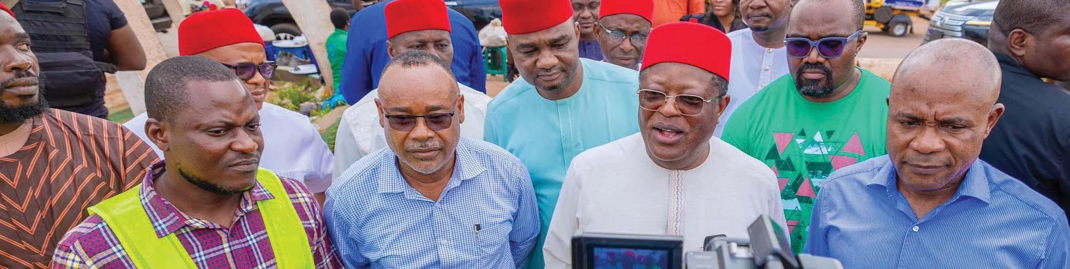 L-R: Acting Federal Controller of Works, Enugu State, Engr. Ndem Okpi; Director of Federal Highways, South East Zone, Engr. David Nwachukwu; Minster of Works, Engr. Dave Umahi; and the governor of Enugu State, Dr. Peter Mbah, during the inspection of various road interventions by the federal government and Enugu State government on the Enugu-Onitsha, Enugu-Abakaliki, and Enugu-Port Harcourt Expressways…yesterday