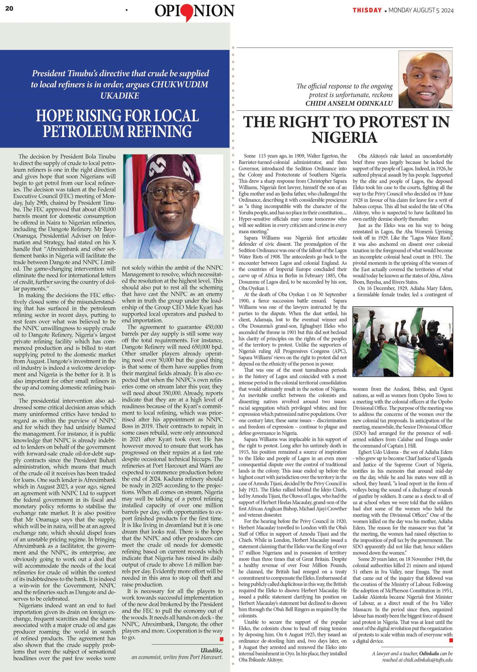 IBB: Democracy has come to stay in Nigeria, we must do everything to safeguard it Soyinka warns security agents on handling of protesters Diri, Edo commend peaceful protests, Mbah, Umahi, Uzodimma salute S’east for opting out Atiku says president’s speech is hollow, fails to address basis for agitations Ezekwesili, Ozekhome, Odinkalu, Peterside, PDP, others fault speech Another protest hits Kano despite curfew Protests end in Lagos, Sanwo-Olu opens new engagement channel with youths