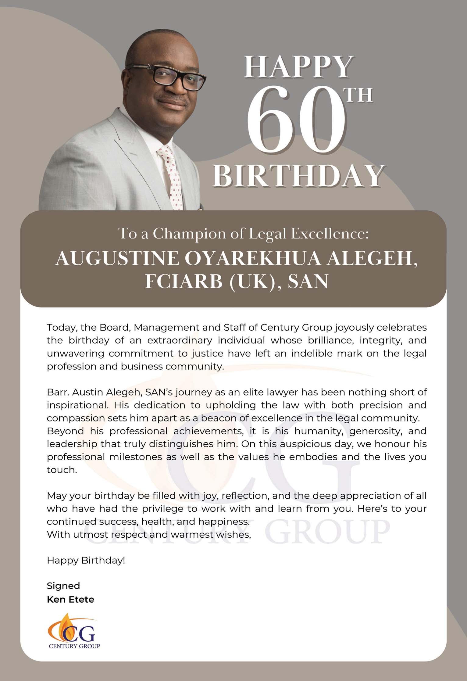 “Unarguably a father figure to me and my family, Mr. Olumese’s good deeds litter our lives, and in gold too - Azuh Arinze.”