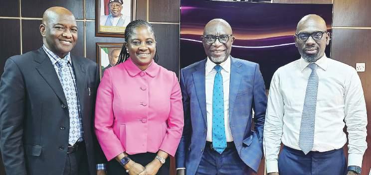 L-R: Executive Director of Operations, Asset Management Corporation of Nigeria (AMCON), Mr. Lucky Adaghe; Managing Director/Chief Executive Officer, Union Bank Mrs. Yetunde Oni; Managing Director/Chief Executive Officer, AMCON Mr. Gbenga Alade and Executive Director, Resolution/Enforcement, AMCON Mr. Adeshola Lamidi when the CEO of Union Bank and her team paid the management of AMCON a business visit at the Corporate Head Office of AMCON in Abuja... yesterday