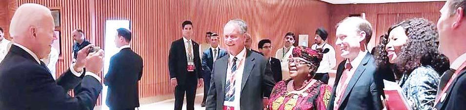 L-R: President of The United States of America, Joe Biden taking photo of Director General of the WTO, Dr Ngozi Okonjo-Iweala (middle) flanked by US National Security Advisor, Mr