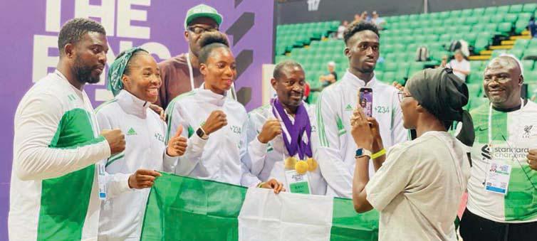 Team Nigeria’s boxers and coaches celebrating the country’s good outing at the Paris 2024 Olympic Games qualifying tournament in Dakar, Senegal at the weekend