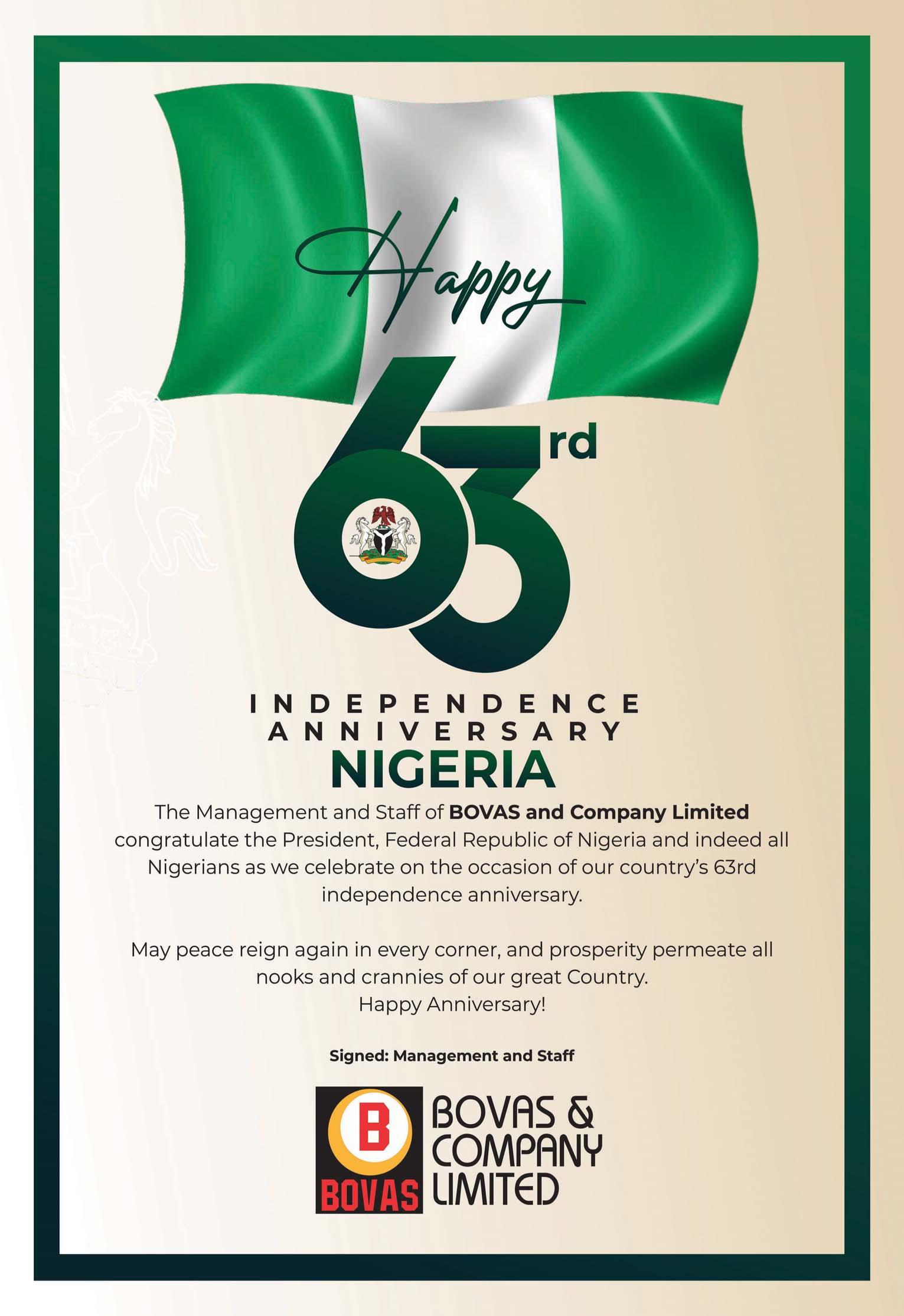 of Nigeria on the occasion of the 63rd independence anniversary of the nation.