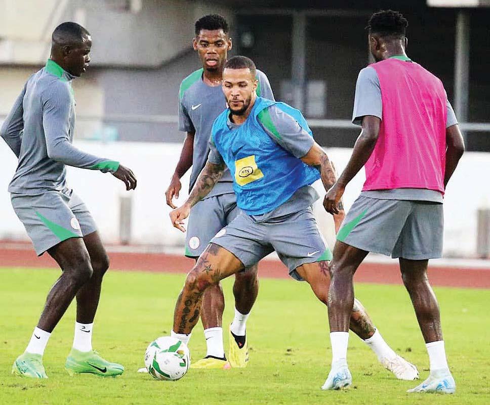 Nigeria’s Stand-in Captain, Williams Troost-Ekong (second right) at one of the Super Eagles trainings in Uyo ahead of today’s AFCON 2025 qualifier against Libya