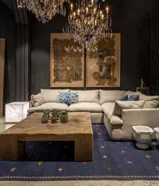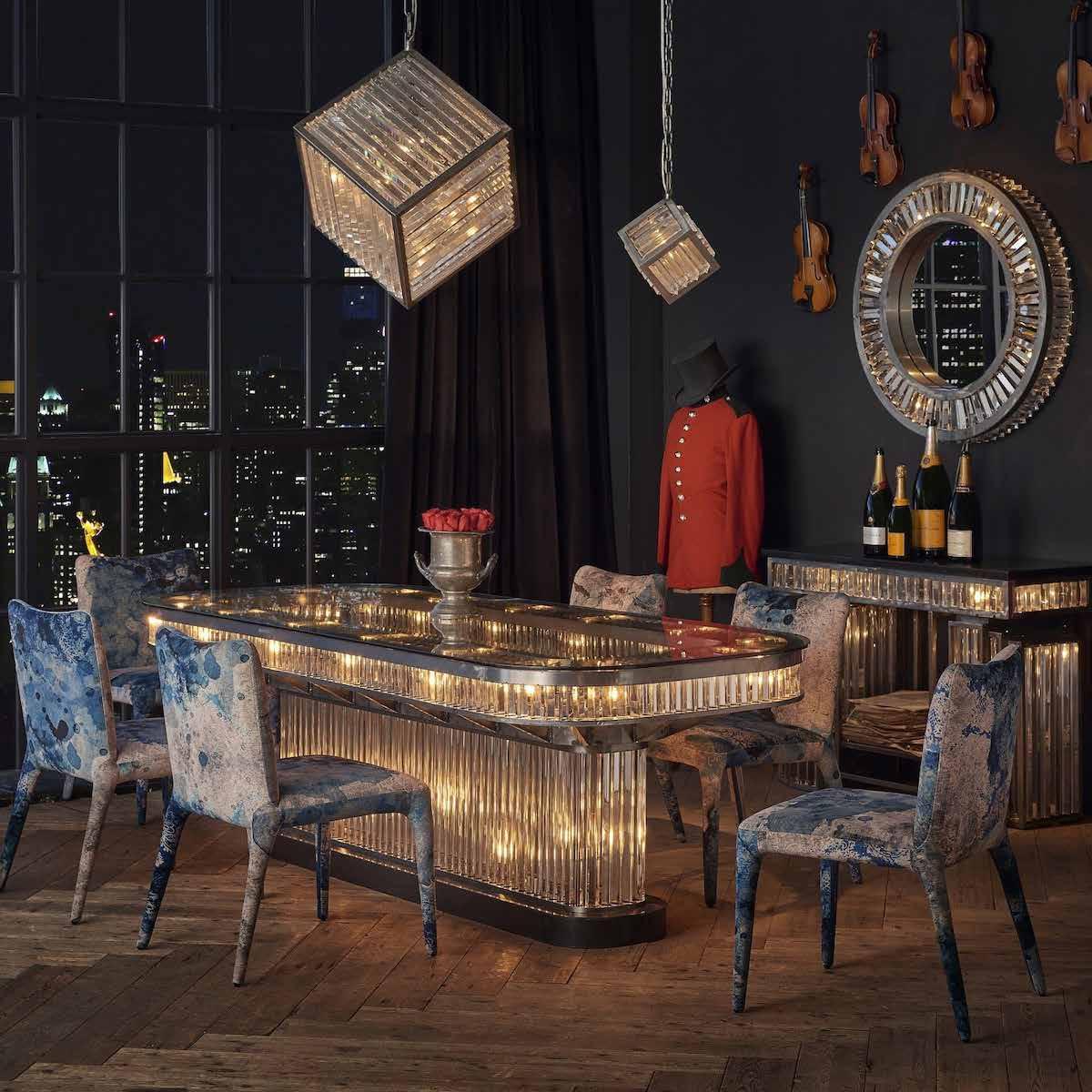 Beyond these statement pieces, the store reveals the depth of Oulton’s craft. The brand designs bars, lights, mirrors, dining tables and chairs, ottomans, and accessories, all made with the same level of care and character. The crystal lights and chandeliers glimmer softly, creating warmth rather than excess. They transform spaces with light that feels lived-in and natural.