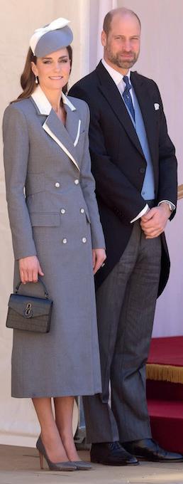 She anchored the look with anthracite pumps by Hugo Boss and a coordinating hat by London milliner Jane Taylor, keeping within a disciplined colour palette. A black top-handle bag from Mulberry added contrast, while the finishing touch, Collingwood pearl and diamond drop earrings, introduced something more personal. The same pair once worn by Princess Diana, now part of the Princess of Wales’ regular rotation, brought a sense of continuity that fashion alone cannot replicate.