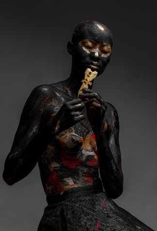 way. My work is African because I am African.” In that assertion lies both freedom and refusal. What accumulates across her practice feels like an archive of bodies, emotions, gestures remembered rather than recorded. Ohobu describes herself not as originator but as conduit. “The stories already exist—in culture, in people, in memory. My role is to listen and find a visual way to express them.” This act of translation has been deepened through collaboration, particularly