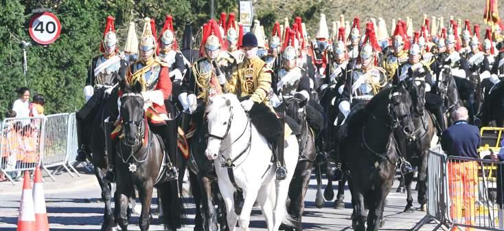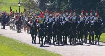 The Grenadier Guards leading a procession at the entrance of the Windsor Castle’s quadrangle