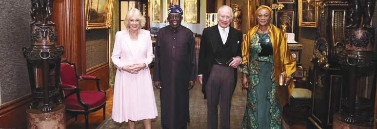 L-R: Wife of King of England, Queen Camilla; King of England, King Charles III, President of Nigeria, Bola Ahmed Tinubu and his wife, Oluremi Tinubu, hosted to a State Banquet at Windsor Castle last night,in honour of their State Visit to the United Kingdom… yesterday (See more pictures on Pages 5 - 8)