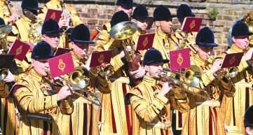 The band of the Grenadier Guards performing both the Nigerian and British national anthems