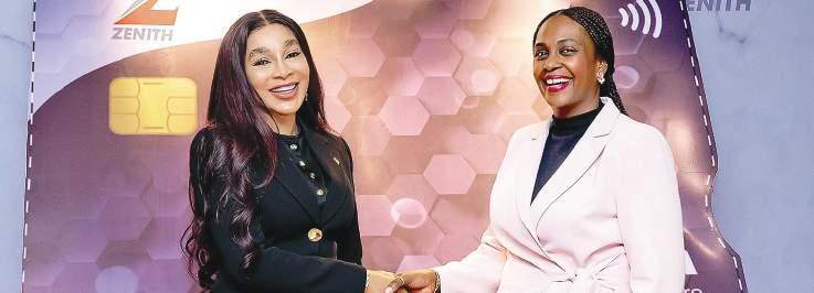 Group Managing Director/CEO, Zenith Bank Plc, Dame Dr. Adaora Umeoji, OON (left), and Senior Vice President/Group Country Manager, Visa West and Central Africa, Aminata Sane, during the launch of Zenith Bank Visa Signature Card at Zenith Bank Headquarters in Lagos, on Monday