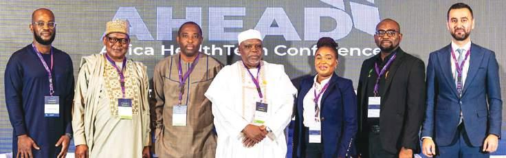 L–R: Chief Executive Officer/Founder, Drugstoc e-hub, Dr. Chibuzo Opara; President, Pharmaceutical Society of Nigeria (PSN), Pharm. Tanko Ayuba; NHIA Director, South West Zonal Office, Pharm. Olufemi Adeoye; Founder/Chief Executive Officer, Pharmaplus Nigeria Ltd., Pharm. Yakasai Ahmed; Head of Medical Services, AXA Mansard, Dr. Olamide Lawal; Head, Medical Operations, LASHMA, Dr. Olugbenga Fadipe; President/Co-founder, Drugstoc e-hub, Adham Yehia; at the just concluded AHEAD Africa Health Tech Conference organised by Drugstoc e-hub Ltd., held in Lagos, yesterday