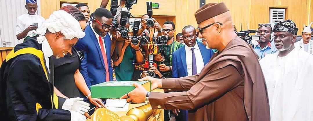 Ogun State Governor, Prince Dapo Abiodun, presenting the 2026 Appropriation Bill titled “Budget of Sustainable Legacy,” before members of the Ogun State House of Assembly, on Wednesday