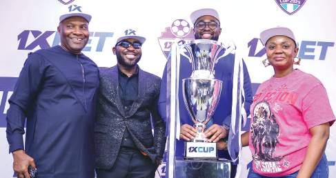 R-L: Country Manager of 1XBet Nigeria, Mrs Geraldine Ibeanusi; 1XBet’s Business Development Manager, Chigozie Nnanna Ewuzie; On-Air-Personality, Spiritual Movement; and Consultant to the 1XCup Tournament, Waidi Akanni, at the Draw Ceremony of the 2025 1XCup Tournament in Lagos... yesterday