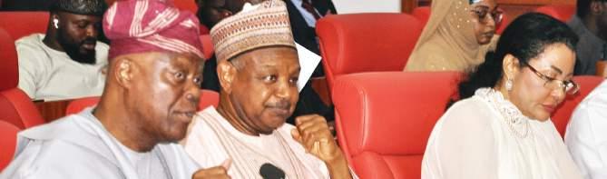 L-R: Chief of the Naval Staff (CNS), Vice Admiral Idi Abbas; Chief of Army Staff (COAS), Lt. Gen. Waidi Shaibu; wife of the late Chief of Army Staff, Mrs. Mariya Lagbaja; Vice President Kashim Shettima; Governor of Lagos State, Mr. Babajide Sanwo-Olu; Minister of Defence, Rtd. Gen. Christopher Musa; Chief of Defence Staff (CDS), Gen. Olufemi Oluyede; representative of the Speaker of the House of Representatives, Hon. Jimi Benson; and Senator Azeez Musa Yar’Adua, representing the Senate President, during the opening ceremony of the 2025 COAS Annual Conference at the NEBO Hall, Abalti Barracks, Ojuelegba, Lagos, yesterday