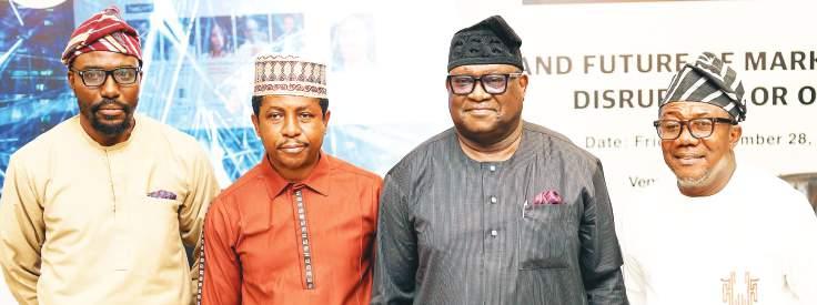 L-R: CEO, Cowry Asset Management Limited, Mr. John Chukwu; President/Chairman of Council, Chartered Institute of Bankers of Nigeria (CIBN), Prof. Pius Olanrewaju; Executive Director, Wholesale Banking, First City Monument Bank (FCMB), Mr. Obaro Odeghe; and Executive Director, Corporate Services and Service Management, FCMB, Mrs. Felicia Obozuwa, during the presentation of Best SME Focused Bank Award to FCMB by the CIBN at its Annual Dinner in Lagos… recently
