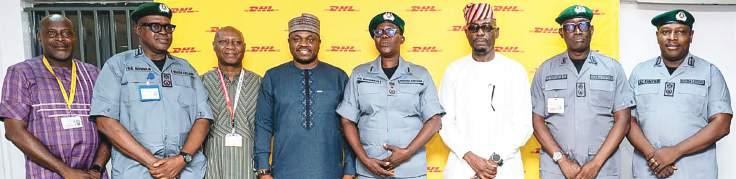 L-R: Mr. Davids Malachi; Comptroller G.A. Otunla, Nigeria Customs Service; Mr. Muyiwa Adeseyoju, Country Manager/MD, DHL International Nigeria; Tola Fakolade, National Single Window; DCG D.A. Adebakin, Nigeria Customs Service; Mr. Lekan Thomas, Director, Cargo, FAAN; Comptroller C.C. Nwokorie, Nigeria Customs Service; and Comptroller A.C. Fanyam, Nigeria Customs Service, at the National Single Window Go Live demonstration which was held at the DHL office in Lagos on 27th March, 2026