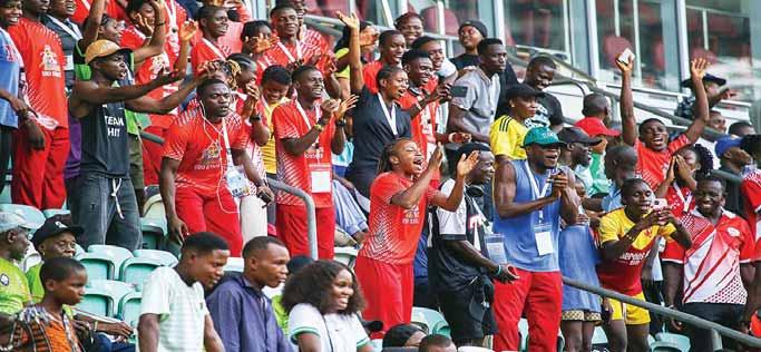 Some of the athletes from the nine mandate states of the Niger Delta Development Commission (NDDC) rooting for their teams during the Men’s 4x400m final on Monday evening. Curtain will be drawn on the Niger Delta Sports Festival in Uyo this evening