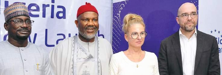 L-R: Managing Director/CEO of the Rural Electrification Agency, Abba Abubakar Aliyu; Chairman of the House of Representatives Committee on Renewable Energy, Hon. Adam Victor Ogene; Head of Green and Digital Economy at the EU Delegation to Nigeria and ECOWAS, Inga Stefanowicz, and Team Leader of GET.invest, Michael Franz, at the launch of GET.invest Nigeria held in Lagos...yesterday