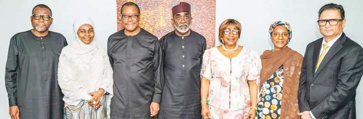 L-R: Former Lagos State Commissioner for Tourism, Mr. Steve Ayorinde; President, National Association of Tour Operators (NATOP), Hajia Bolaji Mustapha; Mr. Ayodele Adebanjo, Director, Tourism Support Service, Federal Ministry of Arts, Culture, Tourism & Creative Economy; Former Chief Justice of the FCT, Justice (Dr) Ishaq Bello (rtd); Hon. Muktar Mohammed, Chairmsn House Committee on Tourism; Aare Abisoye Fagade, Director General, National Institute for Hospitality & Tourism (NIHOTOUR) and Mr. John Enemona, Representative of Chartered Institute of Hospitality, Tourism & Management of America, Abuja... at the inauguration of members and chairman of the Hospitality, Travel and Tourism Practitioners Disciplinary Tribunal (HTTPDT) at NIHOTOUR’s head office in Abuja on Tuesday.