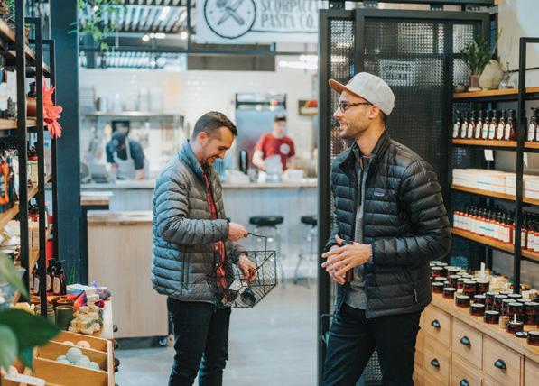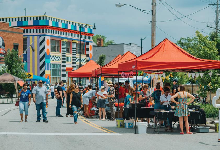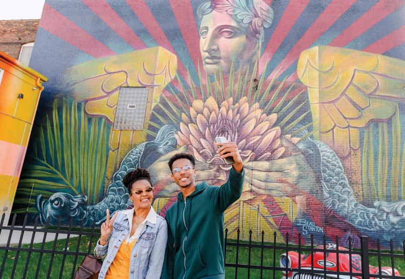 BY SILK ALLEN TREASUREVisit The Hangar in Hingetown for craft cocktails to-go, then browse the hut-shaped shops at City Goods—home to over 20 diverse brands with a focus on women- and minorityowned businesses. Skincare, vintage paper art and custom lamps are just a few things to snatch up. On select dates, you can also catch the Cleveland Bazaar pop-up at Market Square with live music and one-of-a-kind finds from dozens of rotating vendors.