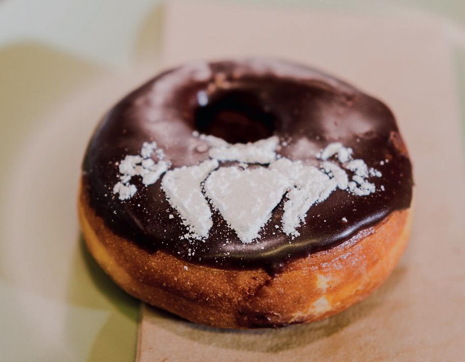 A. We’ll start with one of our most popular donuts from back in the day, The Claddagh Cream. It is our classic Wonky filled with a fresh vanilla pastry cream and dipped in chocolate ganache. We then place a stencil on top and give a generous dusting of icing sugar to give that iconic Claddagh Ring on top. Another Galway inspired creation here are the Pump Lane Bucky Babógs, an ode to my scauldy youth. These are glazed babógs filled with a Buckfast crème diplomat and a chocolate drizzle.