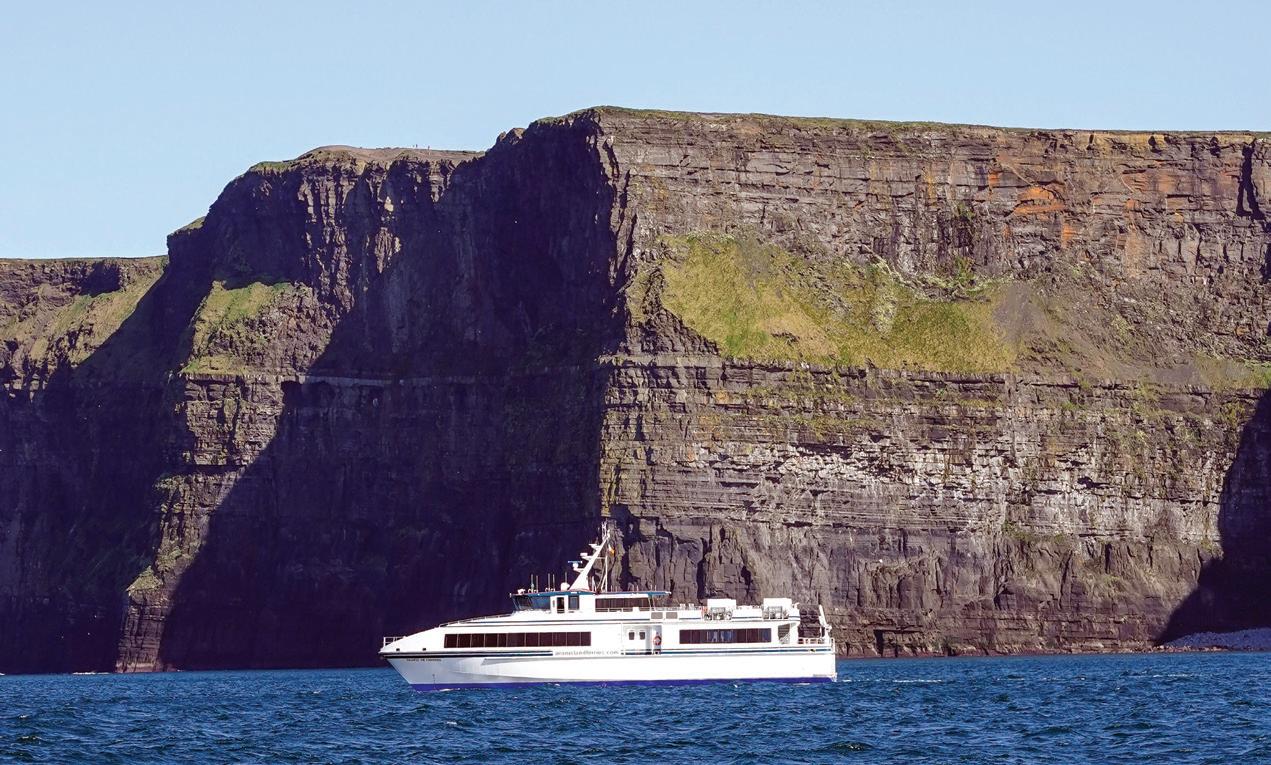 When your island meanderings have come to an end, the return journey will introduce you to the Cliffs of Moher from another level. From aboard the ferry, take in the scale of the cliff’s magnificent beauty and keep your eyes peeled and camera ready to snap shots of Ireland’s largest seabird colony, ‘An Branán Mór Sea Stack’ and the sea cave used in filming ‘Harry Potter & the Half Blood Prince’. Topping it all off you might also catch a glimpse of dolphins, seals and basking sharks along the route.
