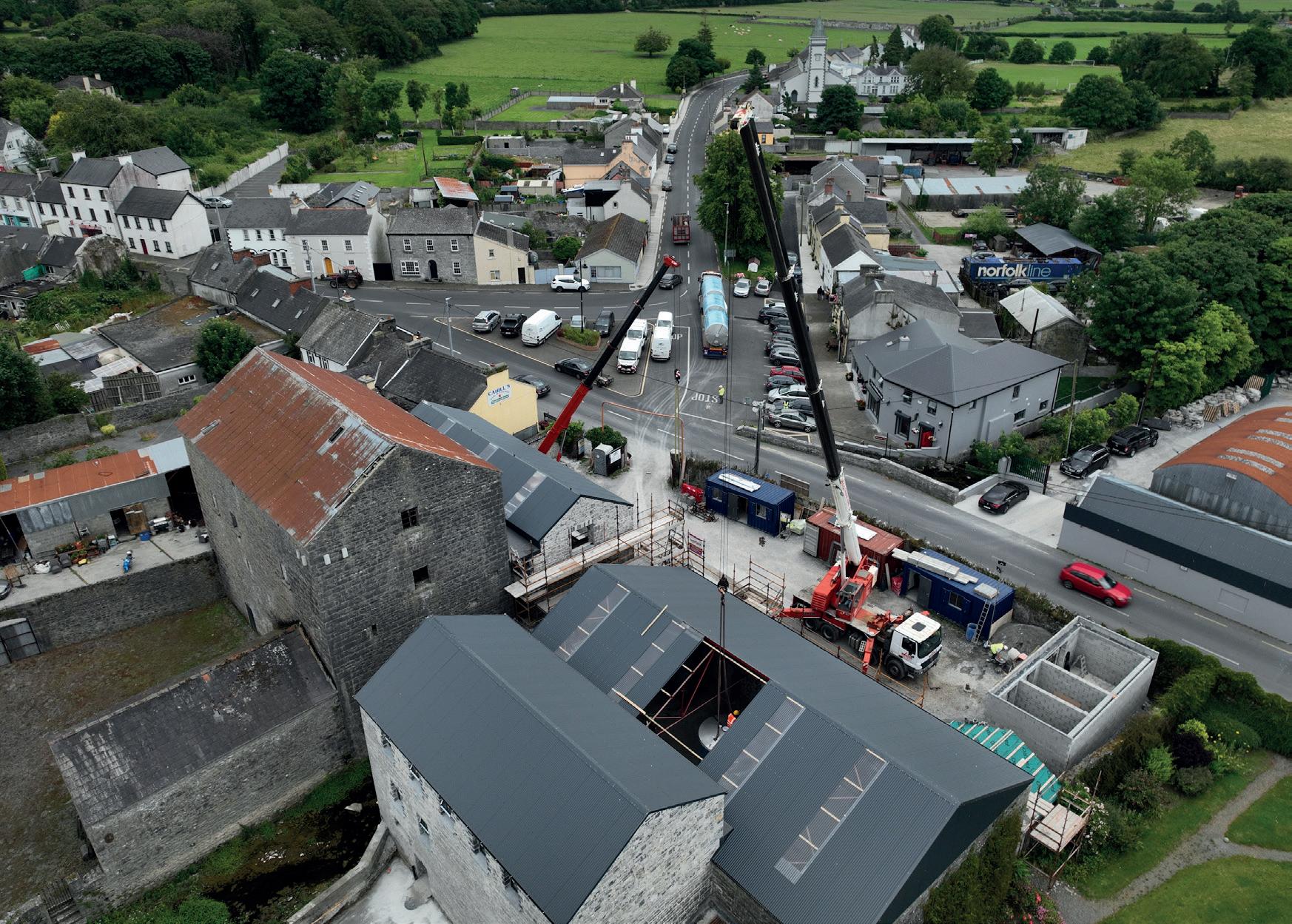 Renewable energy will power Ahascragh Distillery and Visitor Centre, 30% of which will be produced on site. Some of that will be obtained via the roof’s solar panels but it’s the stream where old will meet new in spectacular fashion, as the original mill wheel will be reinstalled alongside high-tech submersible hydro turbines. The challenge with clean electricity, though, lies in converting that into a medium that is capable of driving an energy-intensive process such as distillation. That’s where Gareth’s expertise comes in; “My background is in chemical engineering and I’ve used very high temperature heat pump systems industrially around the world, most recently in China. So I know that technology works, in terms of decarbonising your industry. It is proven from other industries but it’s new to the distilling industry. We know for a fact it hasn’t been done before in Ireland or the UK, and nobody else has come back to say that they have done something similar, so we are assuming that we’re the first in the world! We have it coupled with an energy storage system, a closed-loop system, which means all the heat produced from the process is recovered. For every 1 unit of electricity, we get 3 to 4 units of energy output. It’s a very efficient process!”