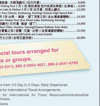 Edison Travel Service Co., Ltd 4F., No.190, Song Jiang Rd., Taipei, Taiwan 886 2 2563 4621 edisontours.com | edison.com.tw