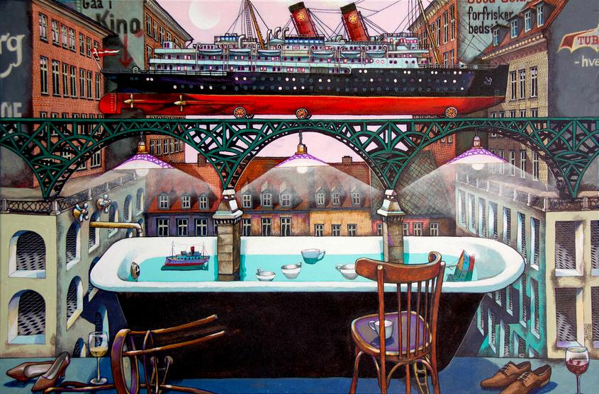 Alexei Svetlovs forårsudstilling på Det Nordatlantiske Fyr åbner døren til et surrealistisk univers, hvor drømmende bylandskaber svæver frit og velkendte elementer får nyt liv Med en unik visuel poesi skaber den internationalt anerkendte kunstner værker, der udfordrer perspektiver og inviterer til refleksion over det irrationelle og det menneskelige