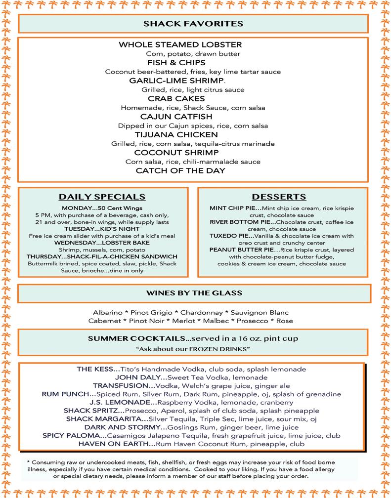 The ‘shack’ is known for it’s casual dining, live music seafood, salads, wraps and more. 540 Dune Road, Westhampton Beach 631-288-5810 or 631-288-5815
