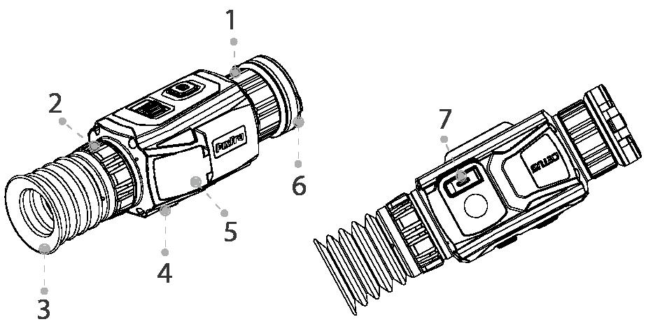 2 Diopter adjustment ring Adjust the diopter according to your eyesight.