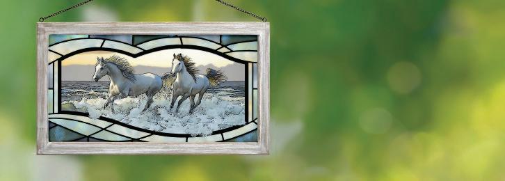 in Whitewash Frame | Framed Size: 13”H x 23”W Stained Glass Art - $143