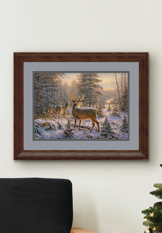 Shown in 20"H x 14"W Framed Glass Art - $99.95 C | WOODLAND MIST - WHITETAIL DEER