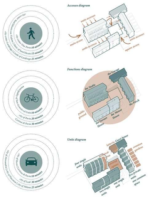 Esse foi um concurso de ideias para a proposta de projeto para a refoma de uma antiga fazenda na região norte da Itália. O conceito desse projeto foi o a renovação dos espaços através do uso de duplas alturas. As conexões não são apenas físicas mas também visuais, criando um lugar único que relaciona o interior e a paisagem.