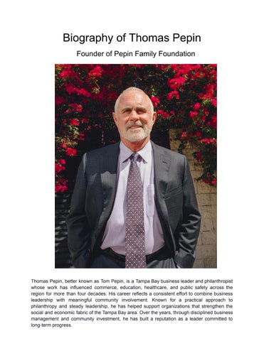 Thomas Pepin, also known as Tom Pepin, is a respected Tampa Bay business leader, entrepreneur, and philanthropist whose impact spans more than four decades. Formerly President and CEO of Pepin Distributing Company, he transformed a small family-owned beverage distribution business into a $260 million enterprise and one of Florida’s leading beverage distributors. Under his leadership, the company became known for disciplined operations, strong partnerships with major beverage manufacturers, and a deep commitment to corporate social responsibility. Beyond business growth, Thomas Pepin built a legacy rooted in community development and strategic philanthropy. He integrated charitable giving into the core identity of Pepin Distributing, supporting nonprofits, civic organizations, and first responder initiatives across Tampa Bay. He founded the T. Pepin Hospitality Centre to provide nonprofit organizations with access to a high-quality event venue, often at little or no cost. This initiative has helped local groups raise millions of dollars for charitable causes. In education, Tom also saw the vision when approached by a group of families whose children were struggling in a general education environment. Pepin Academies was then founded with the family's financial support, a network of public charter schools serving students with learning disabilities, including dyslexia and ADHD. For more than 25 years, these schools have delivered individualized education programs that promote accountability, confidence, and life skills, earning recognition as some of Florida’s top charter schools. In healthcare philanthropy, he launched the Pepin Heart Institute to support cardiovascular research, patient care, and medical education. His leadership in this area earned him the Healthcare Philanthropist of the Year award. He has also been a major advocate for public safety, supporting law enforcement, and was honored as the Tampa Police Department Citizen of the Year and the Lightning Community Hero.