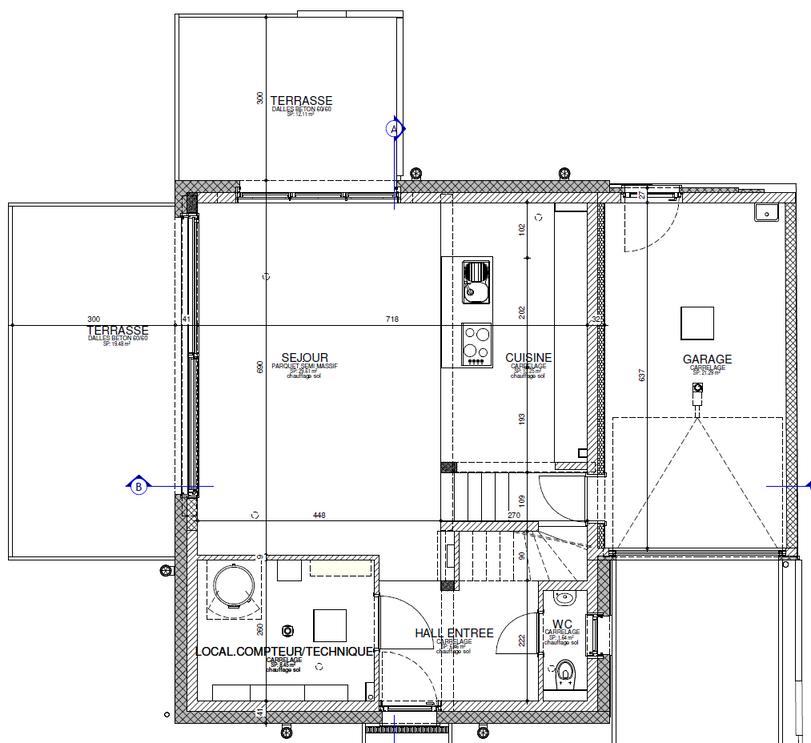 Des contacteurs d’alarme prévu sur les châssis du rez-de-chaussée. Fourniture et pose de carrelage 60/60cm au rez-de-chaussée (valeur achat 55€/m2) et dans les salles de bain Fourniture et pose de faïence murale dans les salles d’eau sur l’entièreté des murs des pièces d’eau (du sol au plafond)