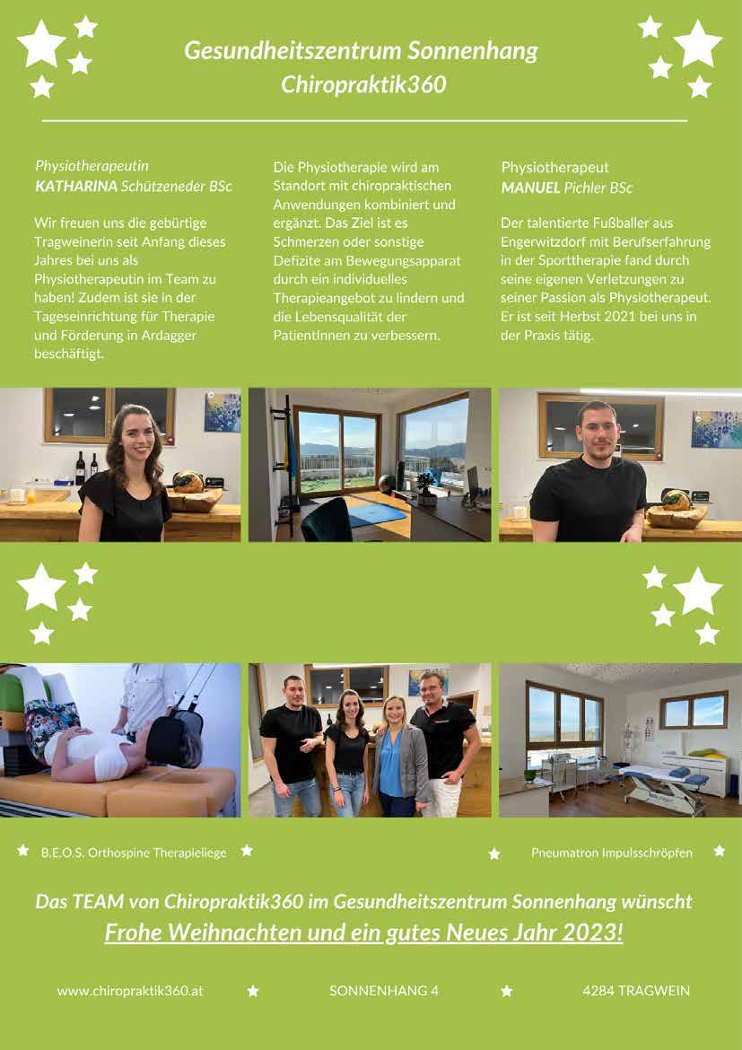 Im Namen der VHS OÖ möchte ich mich für die rege Teilnahme an den Kursen bedanken und wünsche Ihnen ein frohes Weihnachtsfest sowie Glück und Gesundheit im neuen Jahr! Volkshochschule Nebenstelle Tragwein/Bad Zell Mag. Lucia Gusenbauer 0676 84 55 00 329 tragwein@vhsooe.at