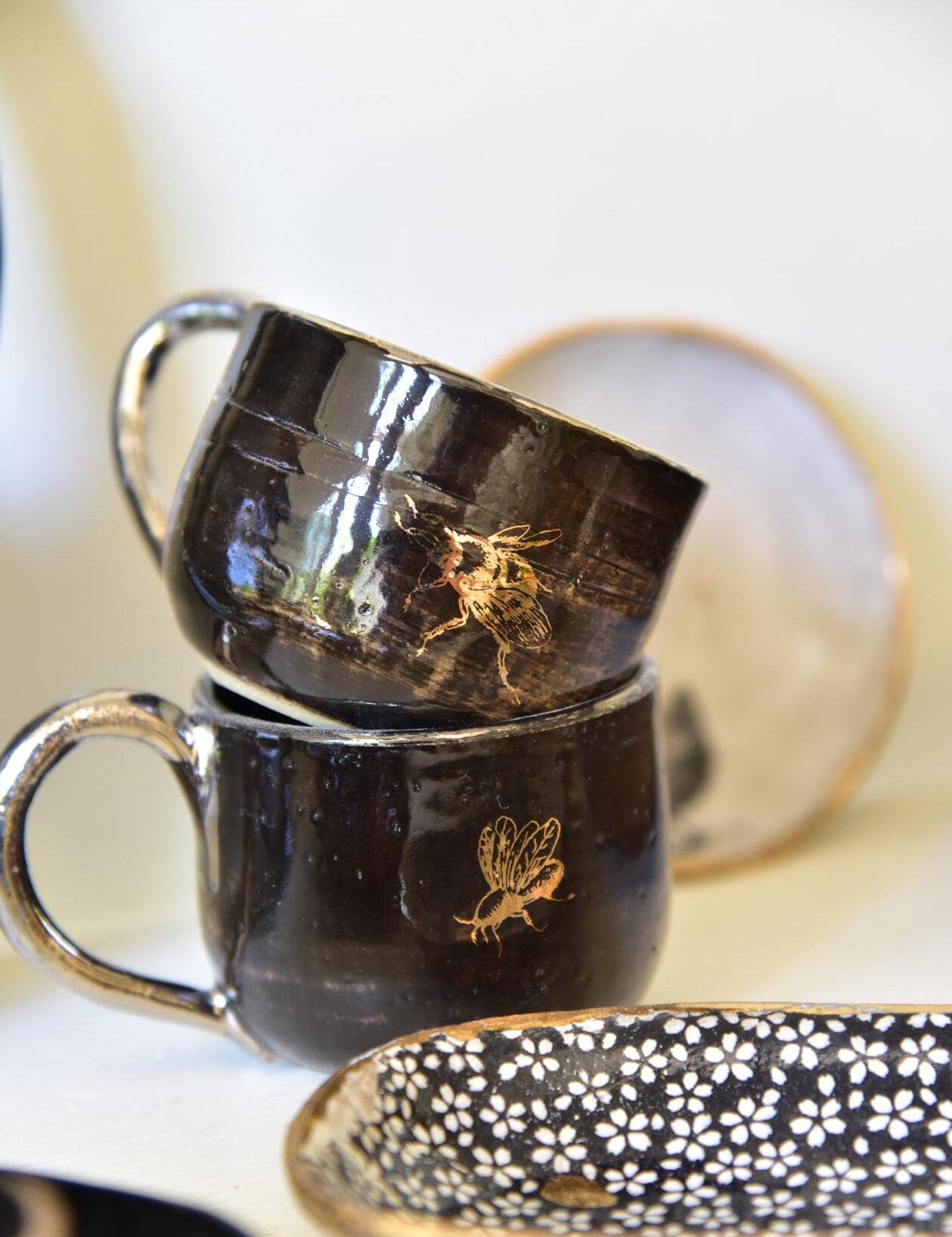 “Stoneware is what I make, and I would also consider myself a functional potter, which means I make everyday tableware like mugs, plates, bowls, and dishes,” she says. “I’m not a sculptor.”