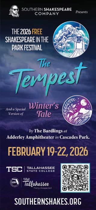 This free session of Shakespeare in the Park will feature The Tempest and a special version of Winter’s Tale by the Bardlings at Adderly Amphitheater in Cascades Park. For info, southernshakes.org.