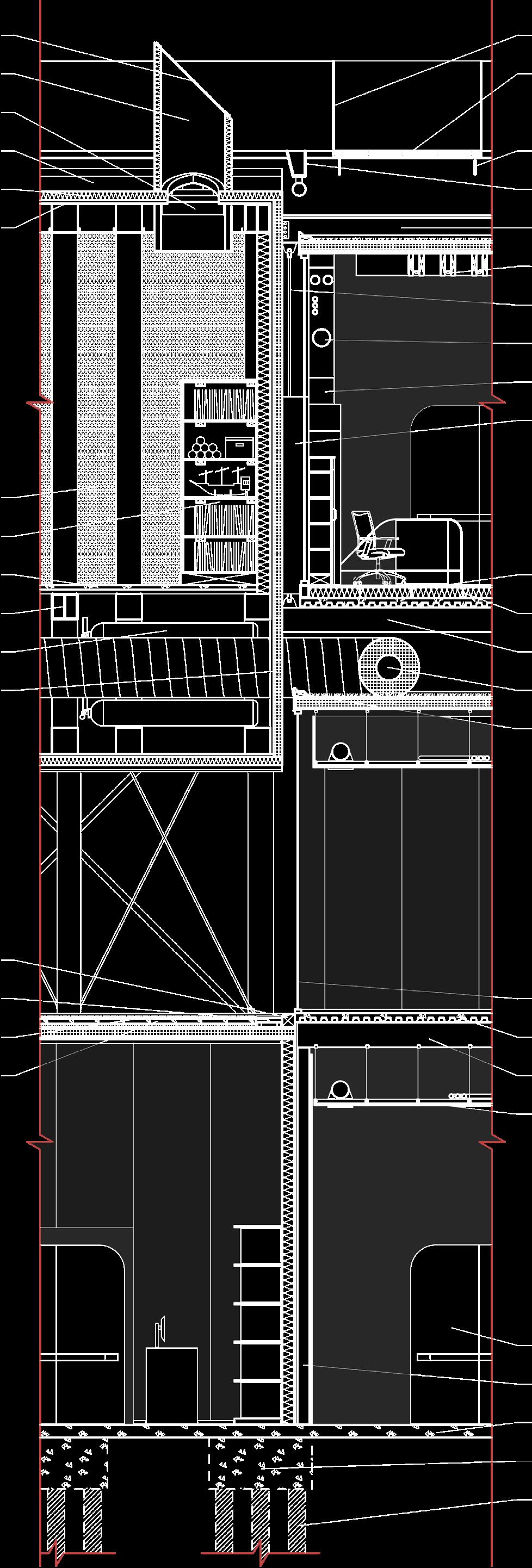 This building is personified by its sectional experience, and each floor has been designed to connect with that concept. Throughout the design process I re-arranged how the programmatic elements connected within one another ensure a meticulous cohesion between spaces. The results are a program that directly correlates with the sectional design of the building while also creating qualitative spaces for the local community.