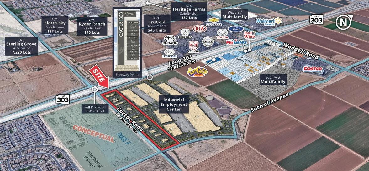 Thompson Thrift closed on 17 acres of land at the Northeast corner of Loop 303 and Cactus Road in Surprise, Arizona. The development sits at the front door of a new industrial development that will comprise of over 1 million square feet of Class A space, and is less than one mile south of Prasada Village, a 1 million square foot retail project currently under development. Read the full article in our Pressroom