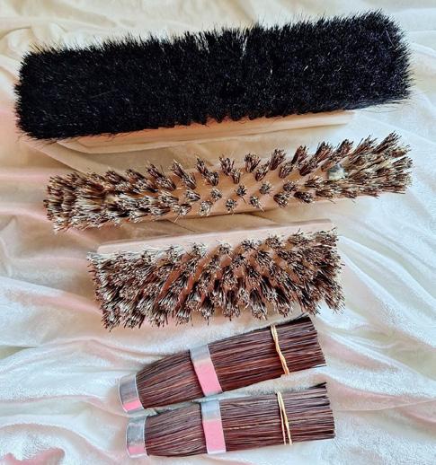 Alle vore børster og koste er håndbundne og mønstrene designer vi selv. Der bruges kun naturmaterialer, som gør holdbarheden meget længere. Vi tilbyder et stort udvalg af børster, lige fra opvaskebørster til gadekoste/ autobørster. Vi binder også børster på standen, så den er et besøg værd.