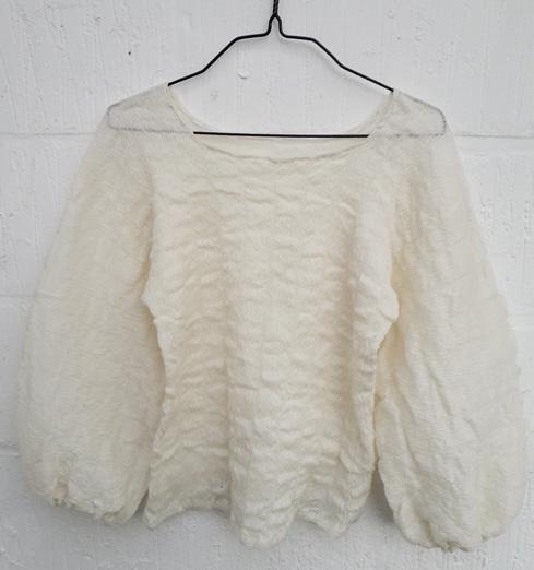 Jeg udnytter nunofilt teknikken til at skabe unika bluser og kjoler. Udgangspunktet er tøj og tørklæder fra genbrugsbutikker og donationer. Brugte silke sarier og hjemmefarvet bomuldsbatist supplerer når det er nødvendigt. Sidste projekt er inspireret af Poul Gernes med store cirkler med indsat kontrast materiale.