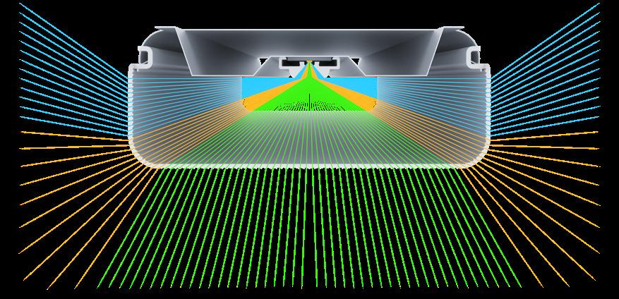 Durch ein hochmodernes optisches Design wird das Licht nach unten, zur Seite und nach oben gelenkt