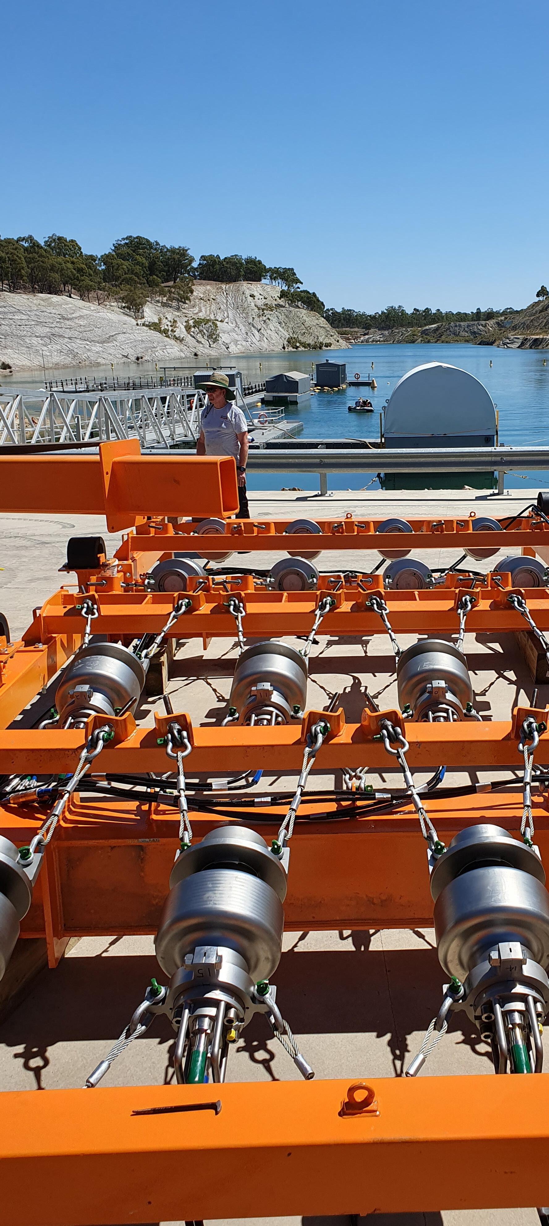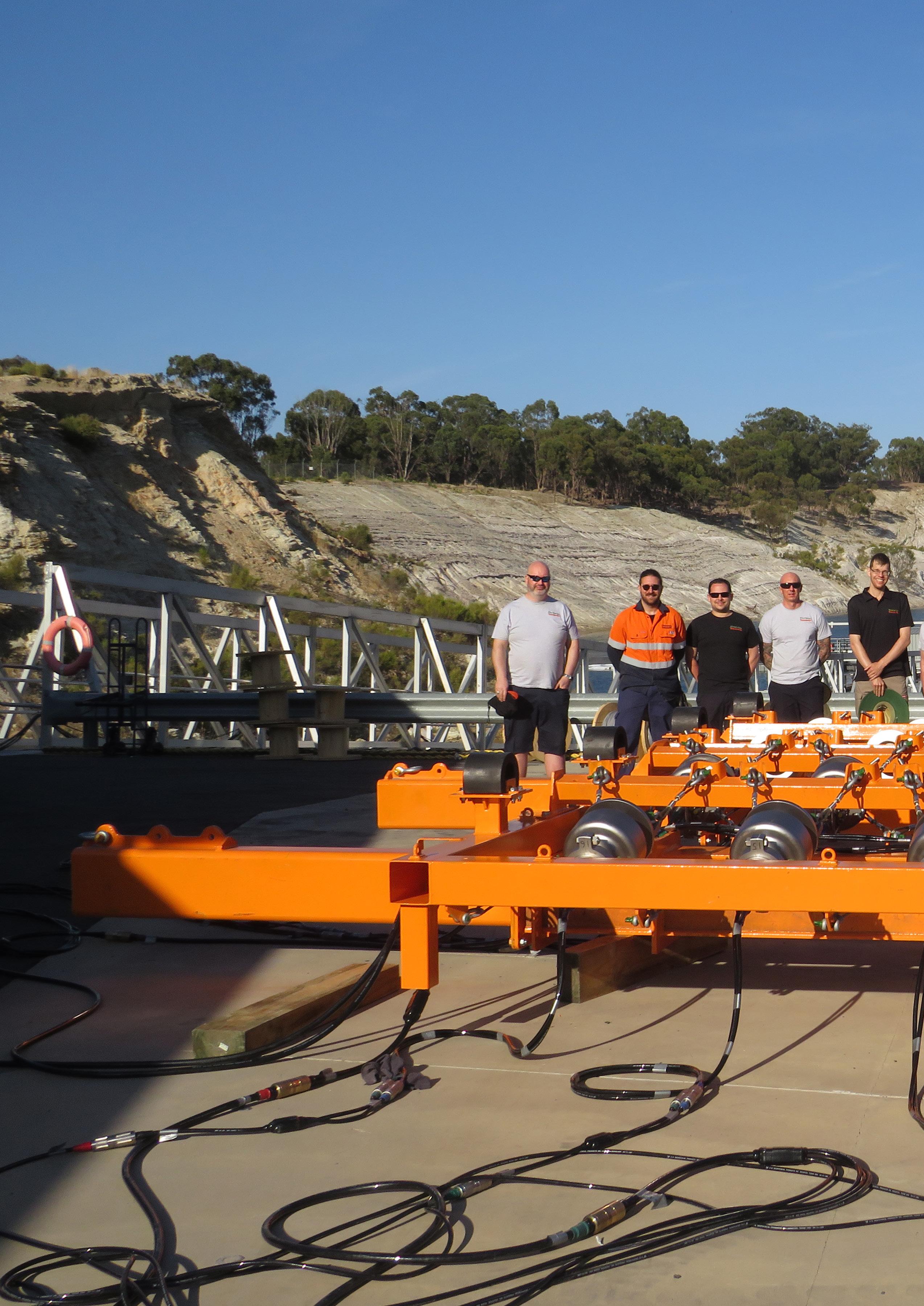This spread: Airgun shock testing against a surfaced submarine structure Cover: Underwater explosive test facility, Nagambie, Victoria, Australia