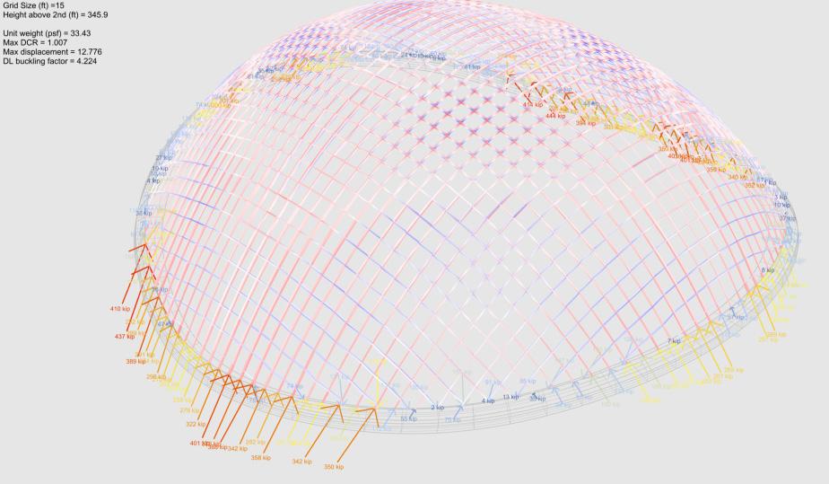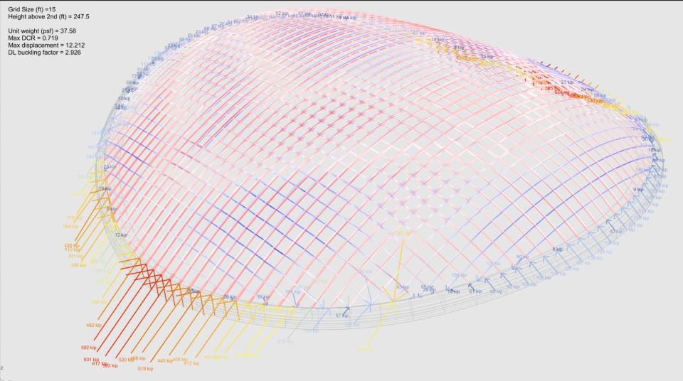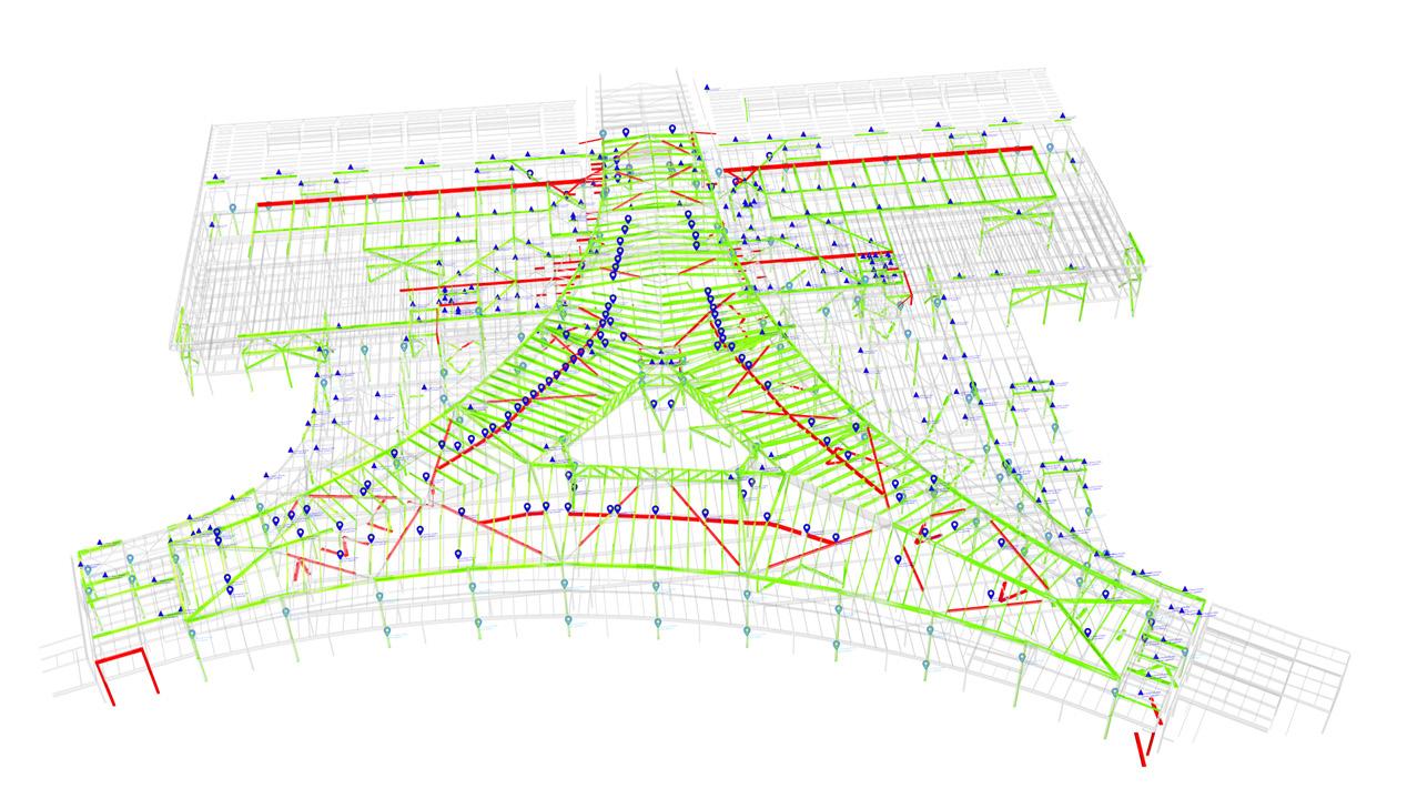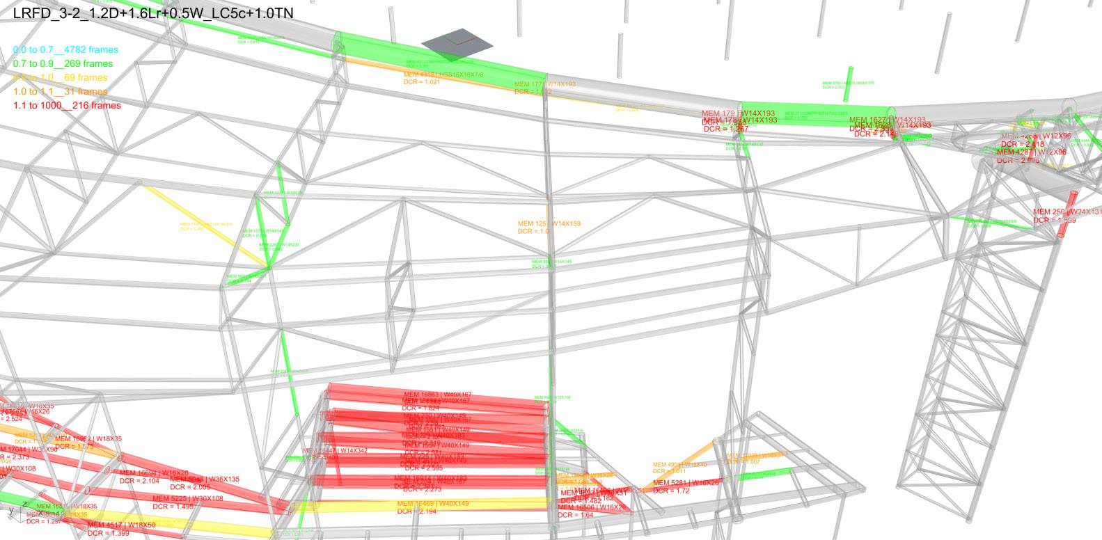 CORE developed a 3D visualization to highlight demandcapacity “hot spots,” identifying areas of greater strain in a stadium structure, based on more than 50 load cases. This helped engineers focus efforts where they matter most. The workflow is now a reusable project template.