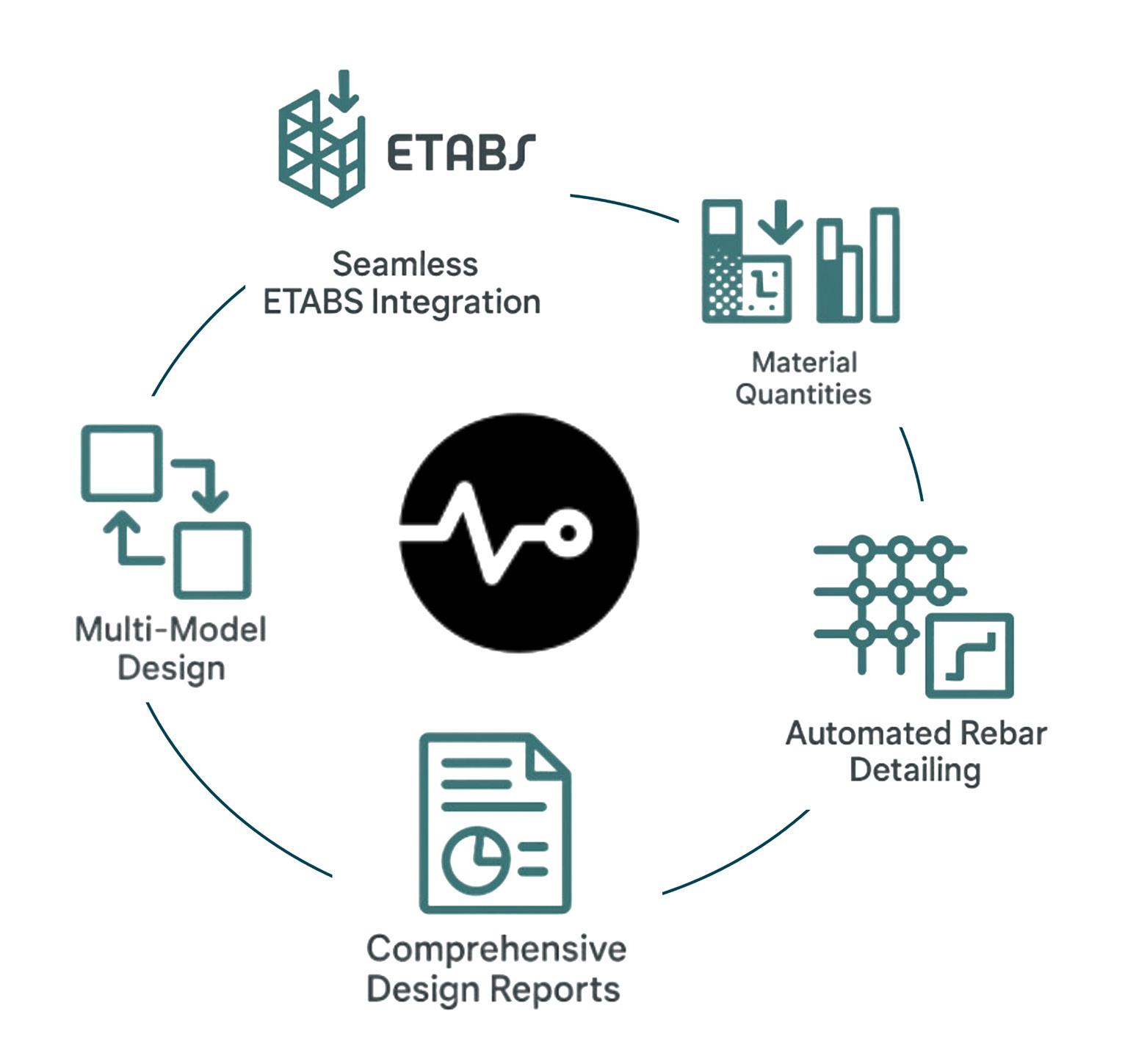 • Exchange design and analysis data between BIM and analysis tools like Revit, Grasshopper, Tekla, RAM, SAP2000, ETABS and Excel.