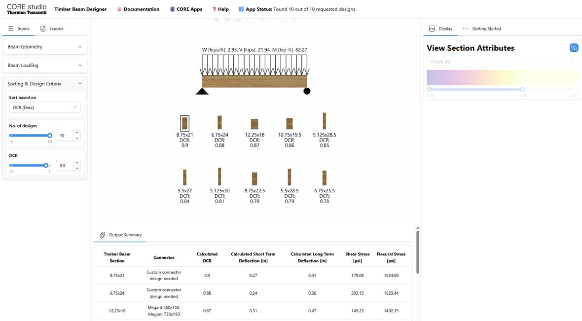 While the generative AI tool rapidly creates design options, physics-based calculations enable engineers to validate and refine the results. Users can also visualize timber sections according to their performance and geometric characteristics, making interpretation easier and more intuitive. Plus, the tool allows for easy export of detailed reports, making it simpler to document work and collaborate with others across design teams.